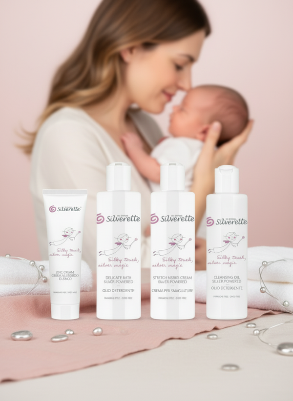 Every Silverette product is designed to offer a unique sensory and safe experience.The 'Silky touch, silver magic' line combines gentleness and innovation through the purifying power of silver, creating a complete skincare ritual for mothers, babies, and for those with sensitive skin.